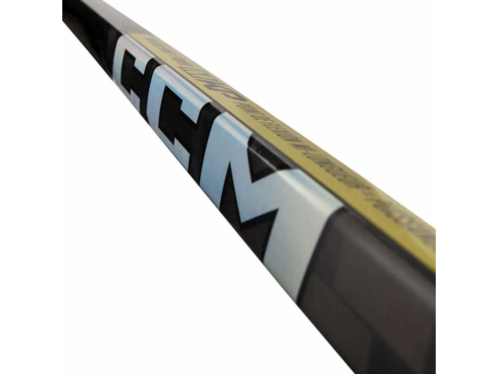 3. Hokejka Ultra Tacks s technologií Bumper. Konstrukce hokejky obsahuje strategicky umístěné výztuhy, které výrazně snižují pravděpodobnost zlomení při intenzivní hře. Tato inovace řeší časté obavy hráčů a posiluje závazek společnosti CCM ke spolehlivosti.
