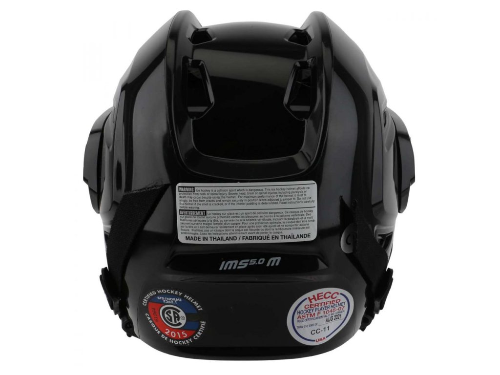 Prilba Bauer IMS 5.0 ma ochrannú vnútornú výplň zloženú z peny dvojitej hustoty a tvrdosti DUAL DESTINY FOAM, tvrdšia slúži na ochranu a druhá mäkšia pre pohodlie. Spolu vytvárajú perfektnú ochranu a pohodlie ktoré je maximálne dostačujúce pre amatérskych hokejistov. Oproti predchádzajúcej verzii Bauer 2100 má jednoduchšie nastavovanie veľkosti, bez použitia náradia. Pomocou klipov po stranách helmy nastavíme veľkosť a klipy zapneme. Integrovaný chránič ucha s penovou podložkou ktorý sa žiaľ vybrať nedá. Základná klasická mriežka Bauer 2100. Certifikáty ochrany CSA, HECC a CA