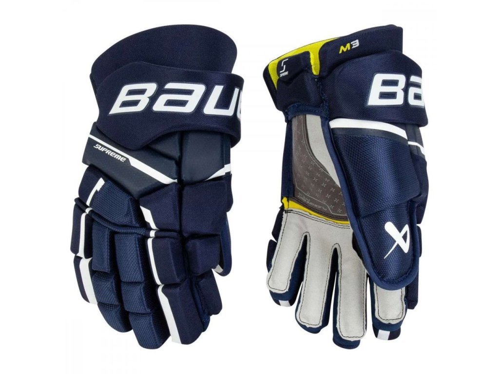 Rukavice Bauer Supreme M3 Int majú anatomický, tesnejší strih, ktorý umožňuje lepší cit a spojenie s hokejkou pri streľbe. Vďaka ľahkej konštrukcii a materiálom odolným voči vlhkosti a priedušnosti je nevyhnutnou súčasťou výbavy každého hokejistu.