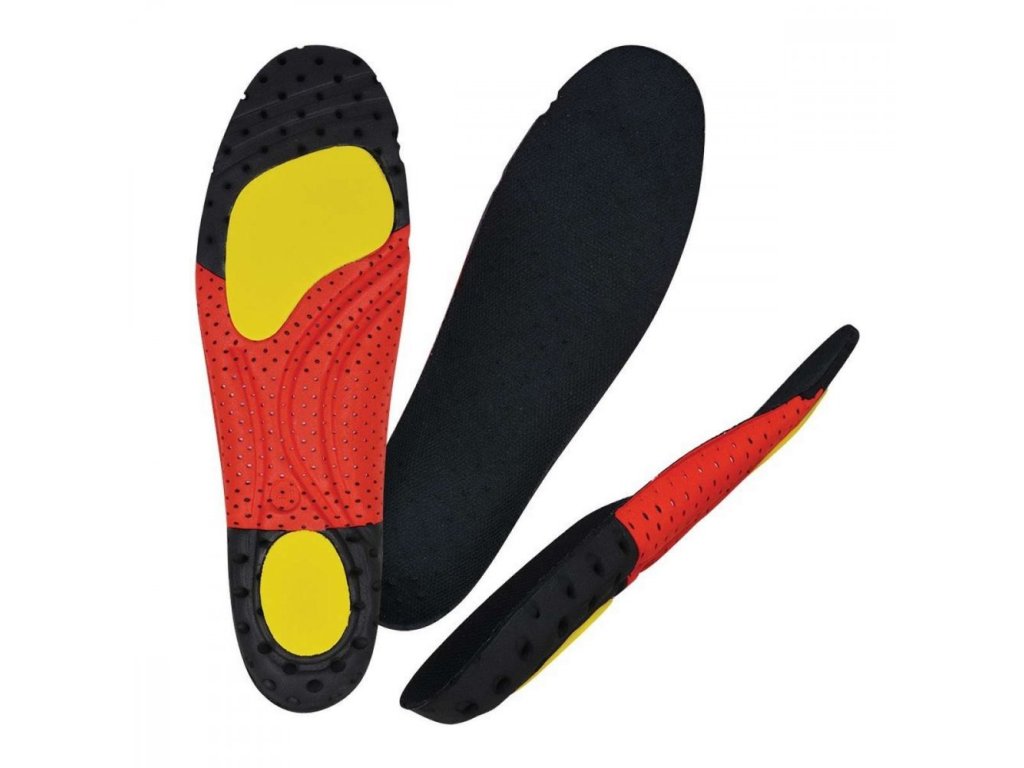 Červený materiál vykazuje najvyššiu možnú podporu klenbe chodila, žltý mäkší materiál zase naopak absorbuje otrasy počas jazdy a zaručuje maximálne možné pohodlie. Celá vložka je veľmi dobre odvetraná.